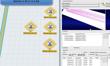 DELMIA Process Planning (PRP) delivers essential process planning capabilities within the V6 virtual 3D environment for all manufacturing industries. Process planners can efficiently create and validate an initial process plan using the product structure from product engineering; modify the plan to specific requirements; and link product and resources to the steps of the plan. Planners can also perform standard time studies and balance the workload between resources. These plans can then be leveraged by downstream stakeholders, minimizing rework as they enrich the plan from concept to execution.